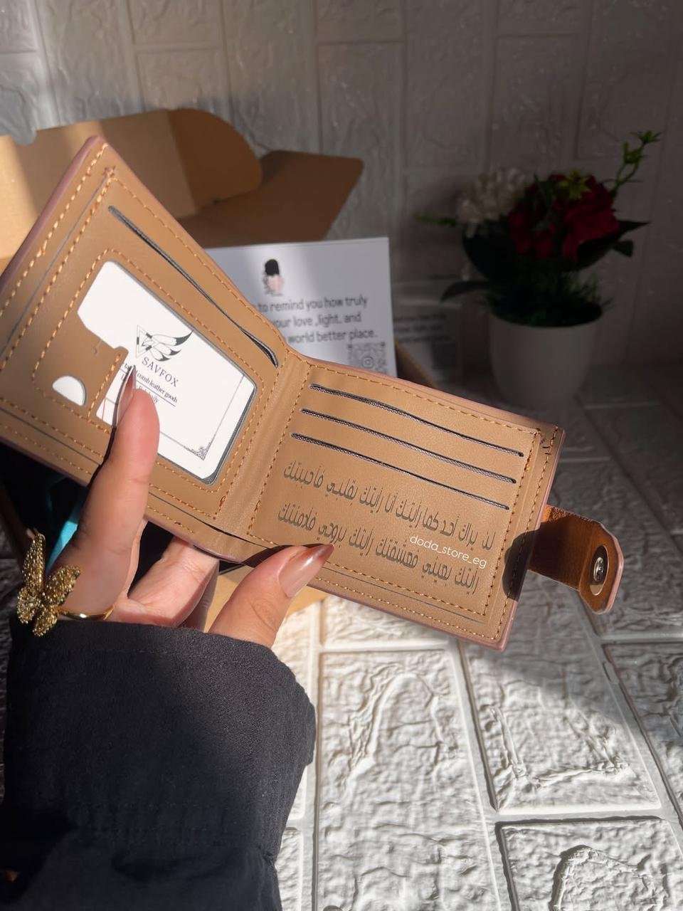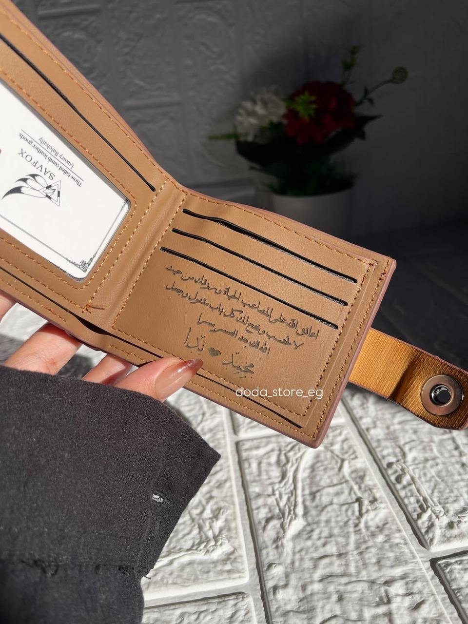محفظة من الجلد الطبيعي 100% بتجمع بين الشكل الشيك والاستخدام العملي، والأهم إنها بتكون مميزة باسم أو جملة من اختيارك – يعني هدية مش شبه أي حاجة تانية 💙