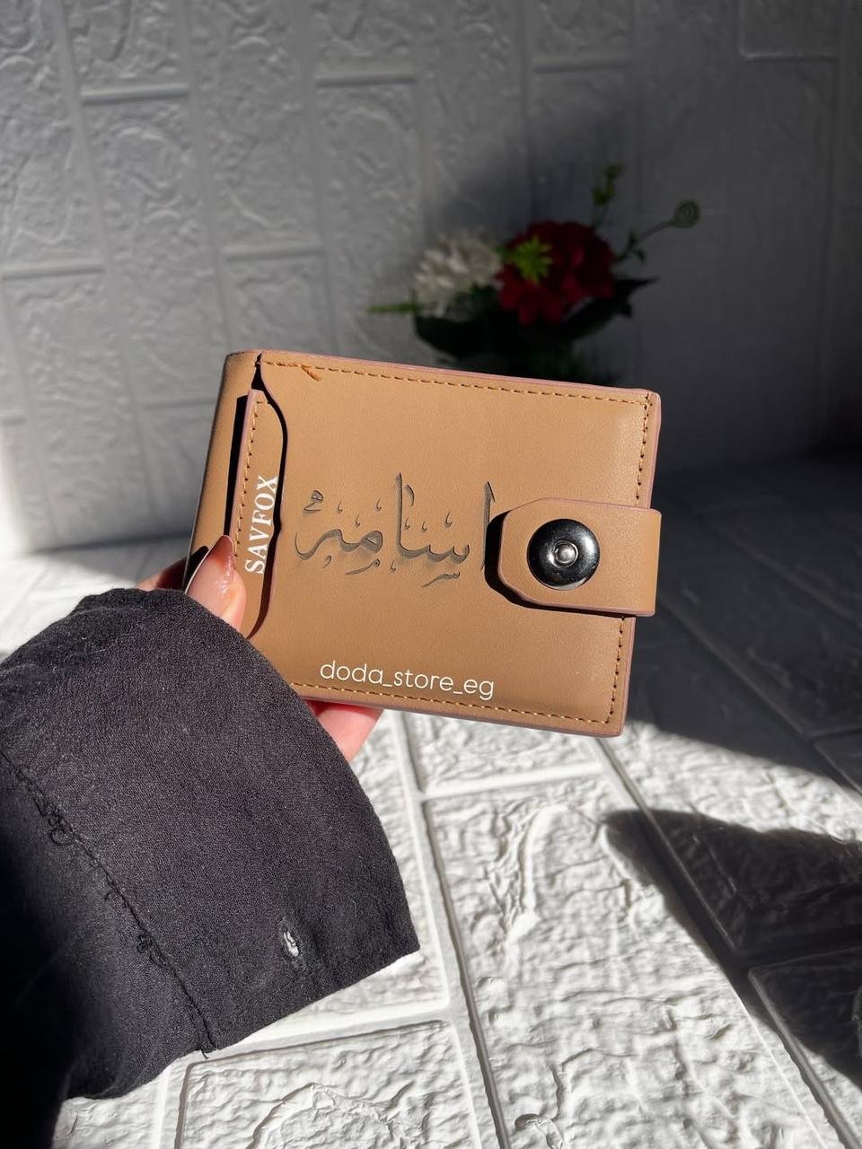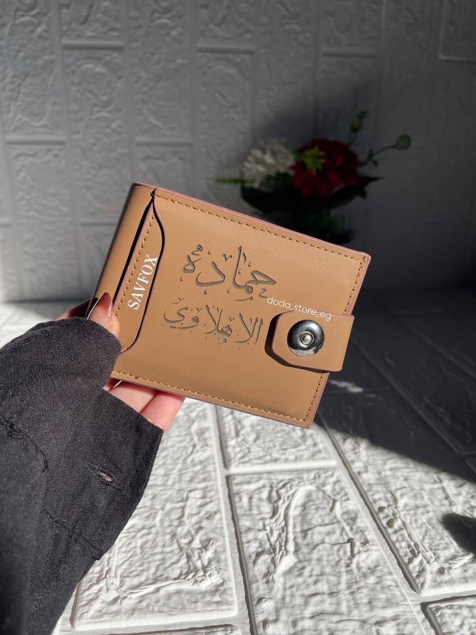 محفظة جلد طبيعي أنيقة بتتكتب باسمك أو جملة من اختيارك – عملية، شيك، وهدية ليها معنى 💙